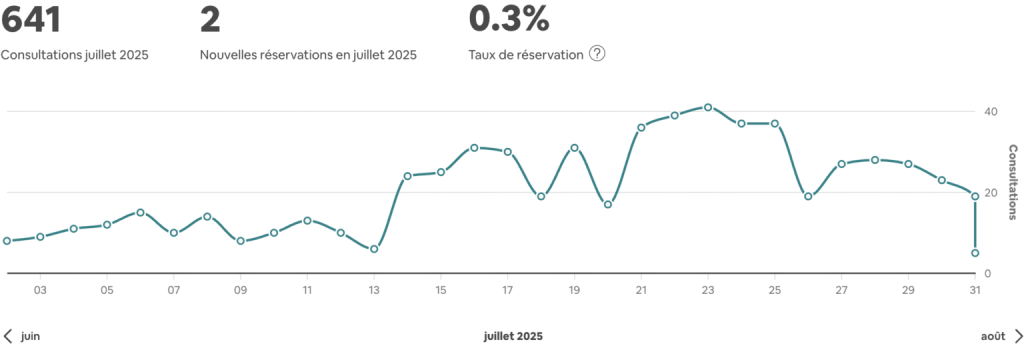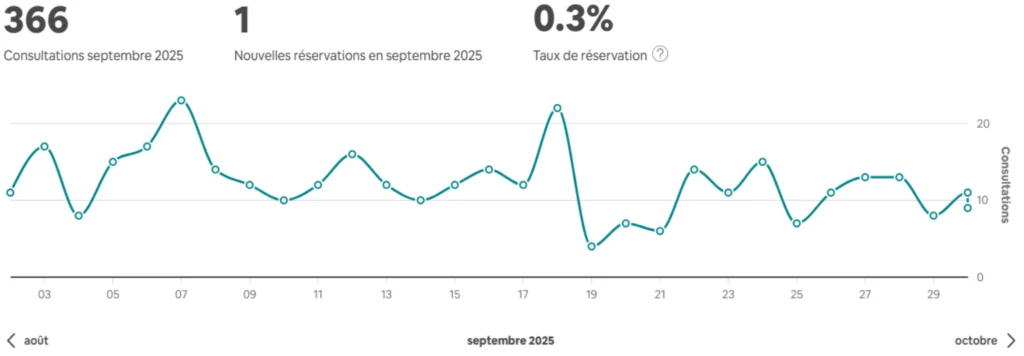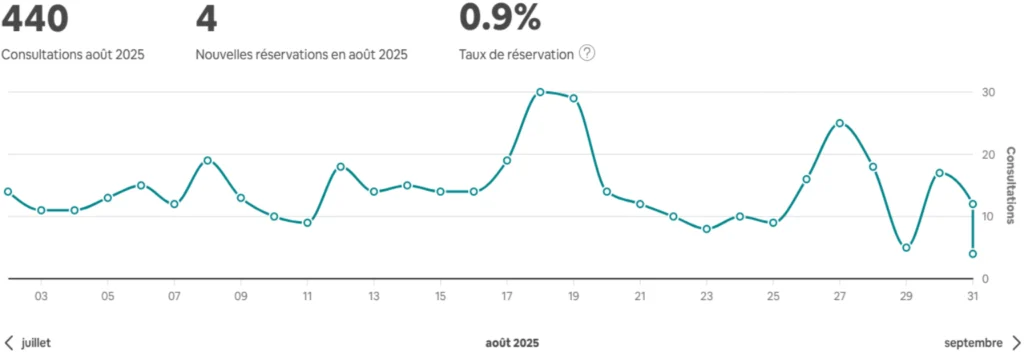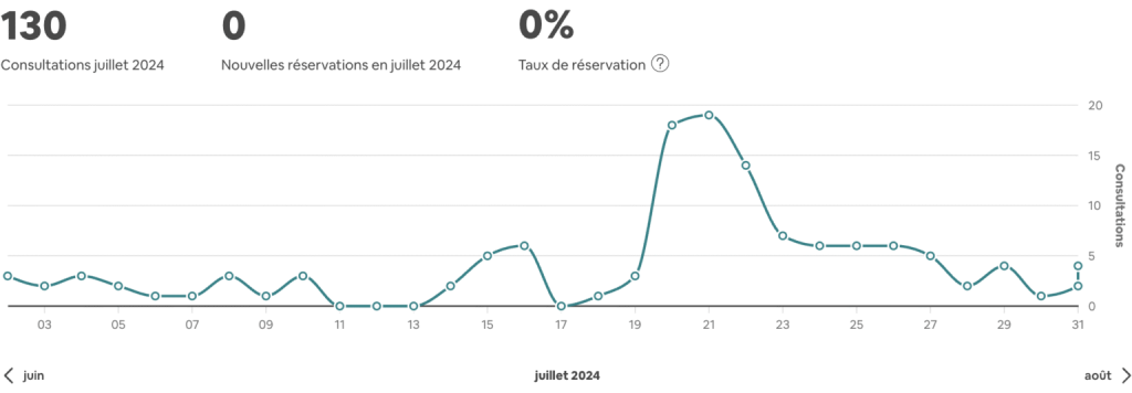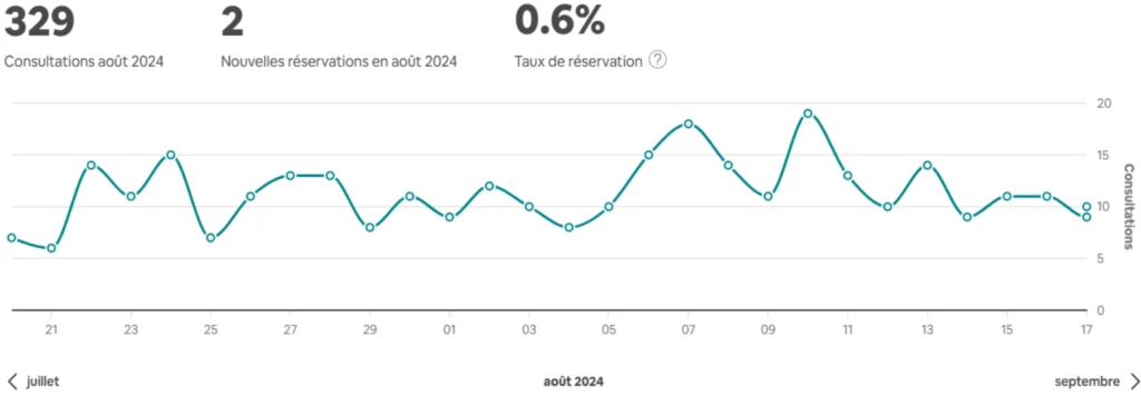 Nombre de visiteurs faible car l’annonce ne répondait pas aux attentes de l’algorithme Airbnb.