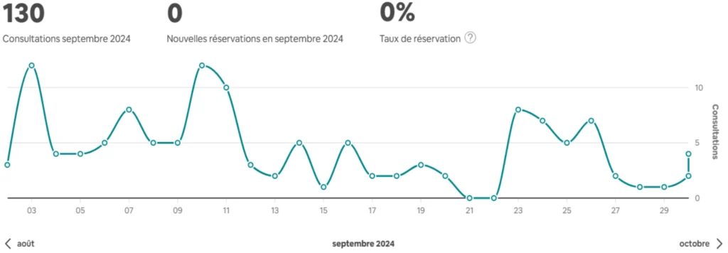 Absence de réservations malgré une offre de location premium.